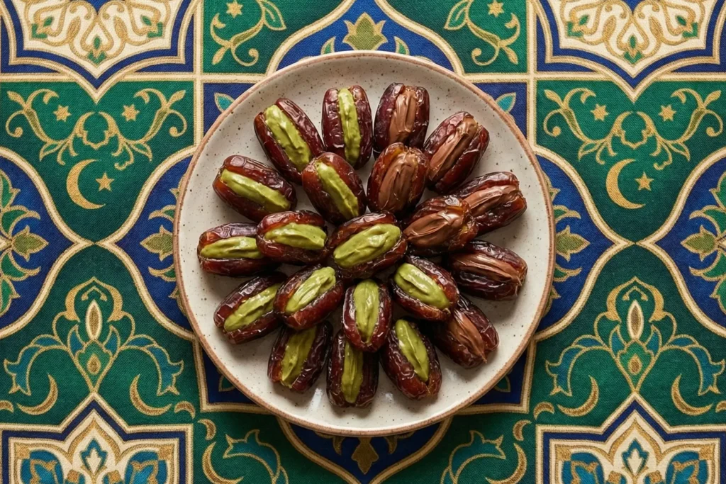 Premium Jordanian Medjool dates, offering a rich, balanced sweetness, carefully pitted and filled with chocolate and pistachio spreads