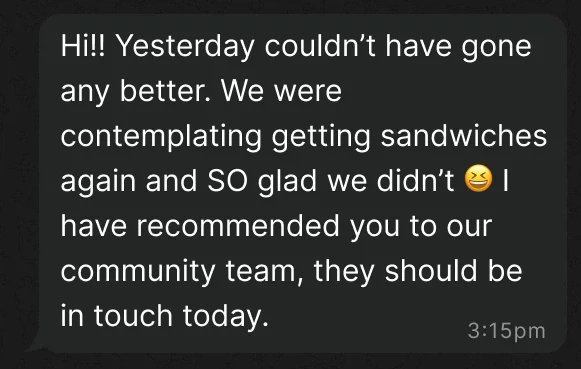 You’ll get a dedicated contact to help plan quantities and dietary needs, so you don’t over-order or worry about allergies.