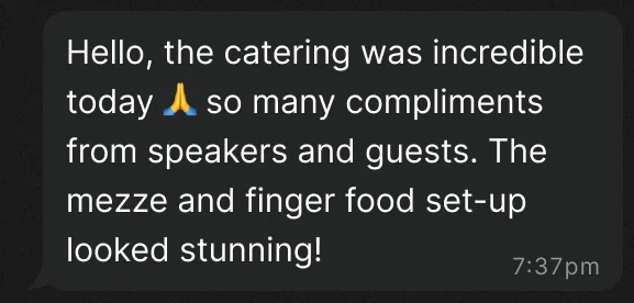 We ordered catering from Syrian Sunflower several times – for large events 200+ people and for smaller business meetings of 20 people. We always received brilliant service…