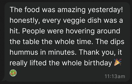 Veggie Prof. Anniversary – 150+ guests